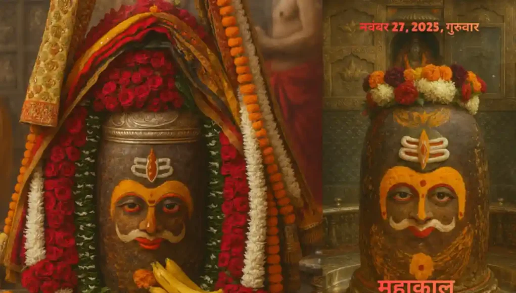 - बाबा महाकाल का रजत मुकुट, रुद्राक्ष और गुलाब की मालाओं से अलौकिक श्रृंगार
