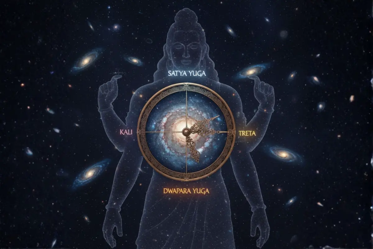 This guide is your introduction to this profound concept—The Time Wheel of Shiva—where we will explore the cosmic ages known as the Yugas, the immense time cycles called Kalpas, and the final dissolution, Pralaya, all presided over by the ultimate master of time, Lord Shiva as Mahakal.