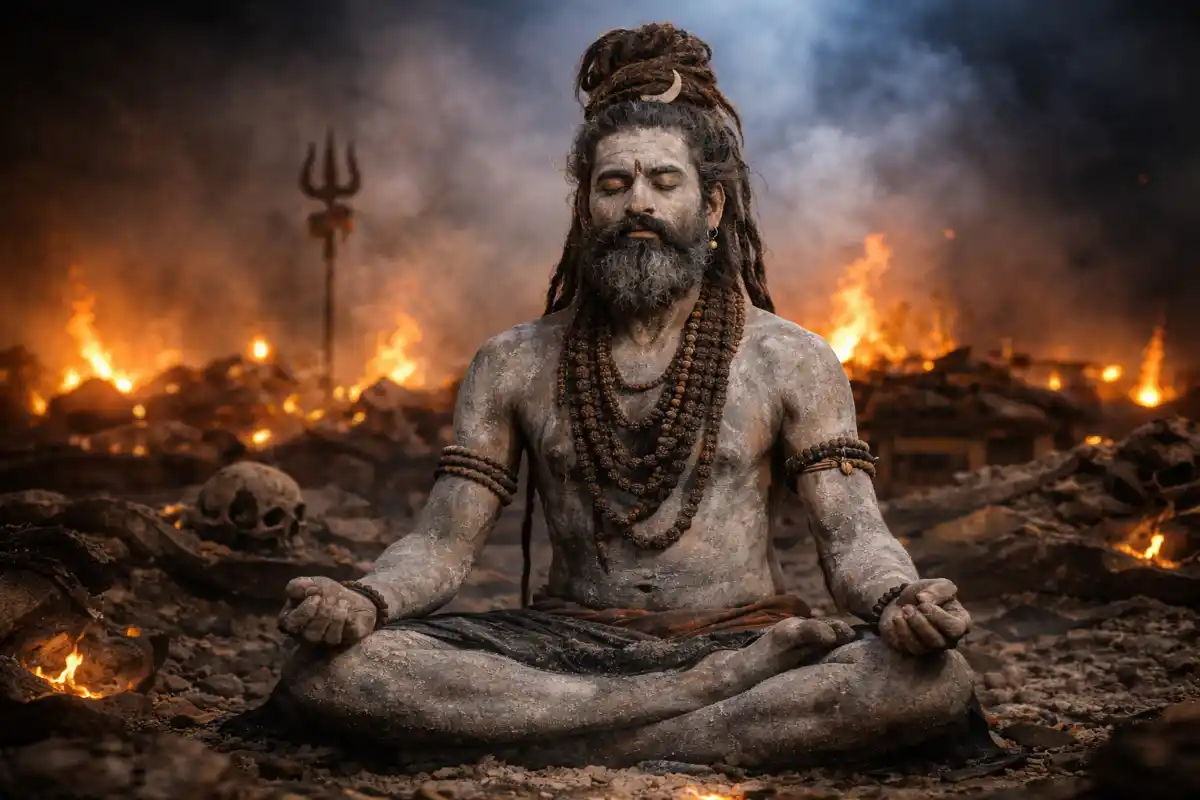 By meditating where all social masks fall away, the Aghori realizes the eternal Self beyond birth and death.